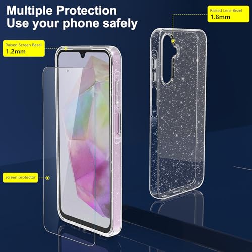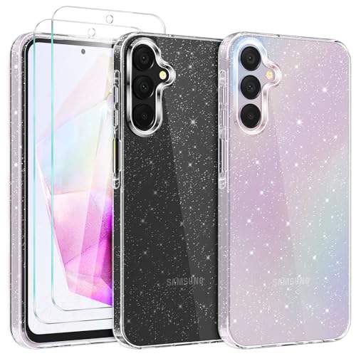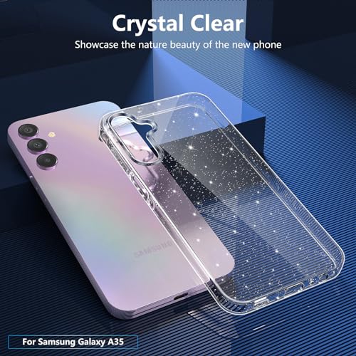š±ćCompatibilityćSpecifically designed for Samsung Galaxy A35 5G (NOT FOR OTHER VERSIONS). Please check your phone model before purchasing. Package Include: 1 clear glitter case for Samsung Galaxy A35 5G, 2pcs tempered glass screen protectors. Give a boost to Wireless Charging.