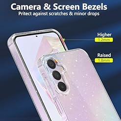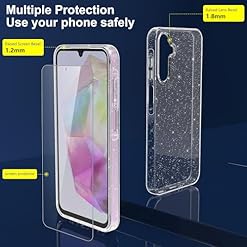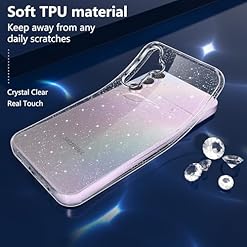 šćLong Lasting GlitterćThe thin, slim for Samsung Galaxy A35 5G case adds extra shine with clear glitter-infused TPU. The glitter will never fade or flake off, ensuring that your phone all the time stays bling. The usage of high-grade materials, the case performs well in anti-yellowing, making your phone more attractive and fashionable.