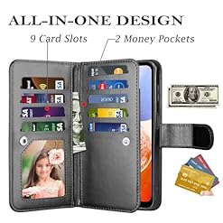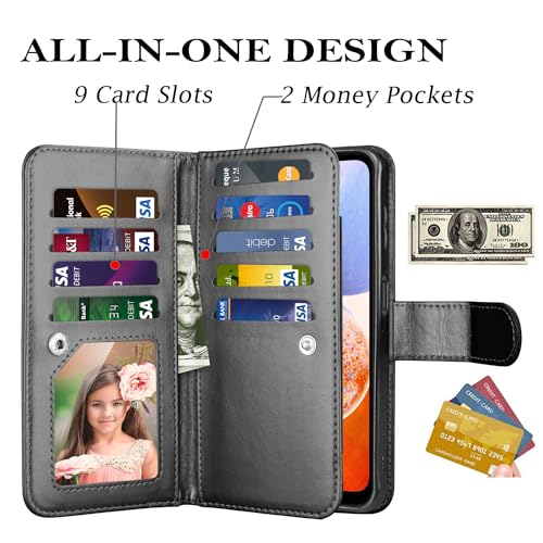 👑[Multi-Functional] Galaxy a14 5g folio case built-in 9 card slots & 2 money pockets conveniently store multi credit cards, cash, ID, drivers license, lovers or child’s photo. Meeting your all day needs outside.