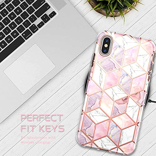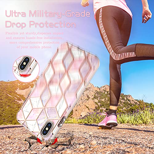 Hasaky Case for iPhone Xs Case,iPhone X Case 5.8 Inch,Dual Layer Hybrid Bumper Girls/Women Marble Design Soft TPU+Hard Back Heavy Duty Anti-Scratch Shockproof Protective Phone Case -Pink/Rose Gold