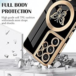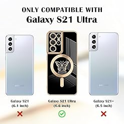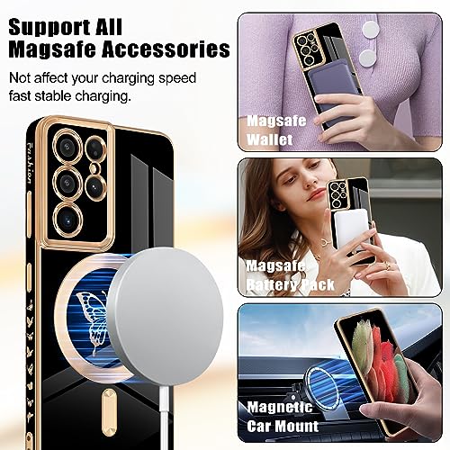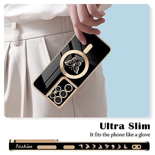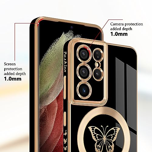 Newseego for Samsung Galaxy S21 Ultra 5G Magnetic Case, Cute Butterfly Plating Edge Case with MagSafe for Women Girls Men Soft TPU Bumper Shockproof Protective Cover for Samsung Galaxy S21 Ultra