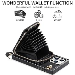 JAKPDE for iPhone 13 Pro Max Leather Wallet Case (6.7-Inch) – Zipper Shockproof Leather Card Holder (12 Cards) & Anti-Theft Lanyard – Crossbody Bag with Card Holder & Detachable Strap(Black)