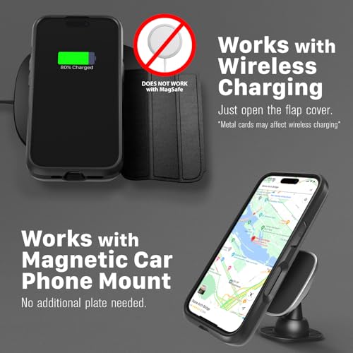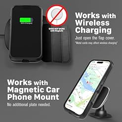 [Compatible With Magnetic Car Mounts] This wallet case comes with metal plates incorporated in the flap, therefore no additional plate or adhesive is needed.