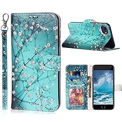 JanCalm for iPhone SE 2022/SE 2020 Case,for iPhone 6/6S/7/8 Wallet Case (Not Plus),PU Leather [Wrist Strap] [Card Holder/Cash Slots] Stand Flip Cover (Plum Blossom)