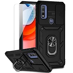 for Motorola Moto G Play 2023 / Moto G Pure/Moto G Power 2022 Case w/Slide Camera Cover HD Screen Protector [Military Grade Drop Tested] Magnetic Ring Holder Kickstand Protective Phone Case