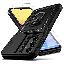 for Samsung Galay A15 5G Case,with Camera Lens Cover HD Screen Protector,[Military Grade] Ring Car Mount Kickstand Hybrid Hard PC Soft TPU Shockproof Protective Case for Galaxy A15 5G