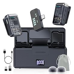 Microphone for iPhone 54Hrs Battery for Android/PC/iPad, mini Microphone Noise Cancelling Wireless Lavalier Microphones for Video Recording Lapel Mic Clip on Mic for Podcast