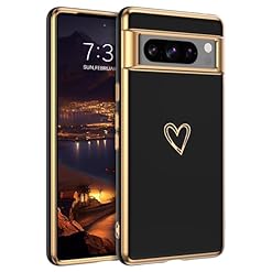 BENTOBEN for Google Pixel 8 Pro Case, Google Pixel 8 Pro Phone Case Electroplating Heart Camera Protection TPU Protective Lightweight Flexible Bumper Shockproof Google Pixel 8 Pro Case 6.7 “
