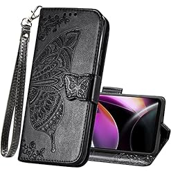 Wallet Case for Moto G 5G 2023,PU Leather Flip Protective Phone Case Wrist Strap Card Slots Holder Pocket Emboss Butterfly Flower Stand Case for Motorola Moto G 5G 2023