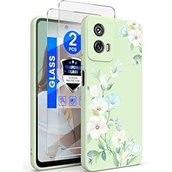 Yucenx for Motorola Moto G 5G 2024 Case, Girls Women Florals Liquid Silicone Phone Case, Shockproof Anti-Scratch Soft Protection Case with 2X Screen Protectors for Moto G 5G 2024