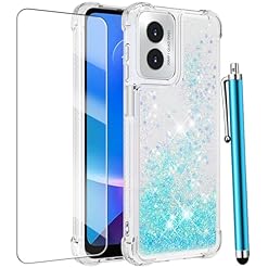 CAIYUNL for Moto G Play 2024 Case with Screen Protector, Cute Women Girls Glitter Bling Liquid Floating Phone Case Slim TPU Soft Silicone Shockproof Girly Cover for Motorola G Play 2024