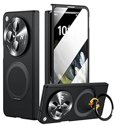 zifiuzem for Oneplus Open Case with 360° Magnetic Rotatable Ring Stand, Built-in Screen Protector & Hinge Protection, Thin & Slim Magnetic Stand Phone Case 5G
