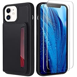 Bizzib for iPhone 11 Wallet Case with Card Holder, with 2 Screen Protectors Kickstand Card Slots Double Magnetic Clasp Shockproof Case for iPhone 11 6.1 Inch Black