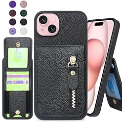 Harryshell Compatible with iPhone 15 / iPhone 14 / iPhone 13 6.1 inch Case Wallet with Card Slots [ Hold Up to 6 Cards] Kickstand Function Zipper Pocket Protective Phone Cover