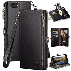 XcaseBar Compatible with iPhone SE 3rd/7/8 Wallet case with Zipper Credit Card Holder【RFID Blocking】, Flip Folio Book PU Leather Phone case Shockproof Cover Men Women for Apple SE case Black