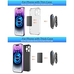 ✅【360 ° Rotation】: This phone mount for car can rotate 360 degrees, you can rotate it and adjust the angle of the phone holder to provide the best viewing angle. The phone can be placed and taken out with one hand, and the phone menu can be easily operated. Our magnetic car holder is elegant and small, so you can share the car holder with your friends, family.