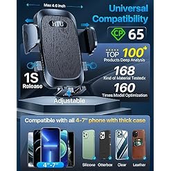 🥇Super Strong Suction Cup, No Residue: The HTU cell phone holder car’s black suction cup utilizes a three-layer nano-adhesive, boasting a suction force of 35 to 56 kg—three times that of ordinary suction cups! It remains secure even on bumpy roads and won’t fall off. Operating in temperatures from -40°F to 203°F, it’s been tested thousands of times in our labs, demonstrating that it won’t melt or leave residue even in extreme conditions. Thanks to its unique material, the product can be reused after rinsing the bottom with clean water.