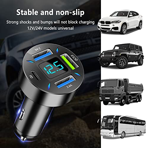 4 Ports USB Car Charger USB Adapter with Voltmeter,Type C Port PD 3.1/QC 3.0 Super Fast Charging Car Cigarette Lighter Plug for iPhone 14 13 12,S22 S21 S20,iPad Pro& More Mobil Phone (Black)