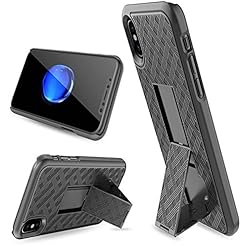 Aduro Combo Case & Holster for iPhone X/XS, Slim Shell & Swivel Belt Clip Holster, with Built-in Kickstand for Apple iPhone