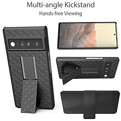 Ailiber Compatible with Google Pixel 6 Pro Case, Pixel 6 Pro Case Holster with Screen Protector, Swivel Belt Clip Holster Kickstand Holder, Slim Rugged Protective Cover for Google Pixel 6 Pro-Black