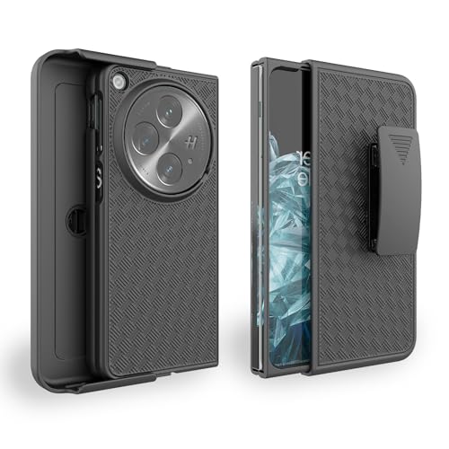 Ailiber for OnePlus Open Case with Belt Clip, OnePlus Open Holster Case with Screen Protector, Kickstand Holder, Slim Shell Full Body Shockproof Cell Phone Cover for One Plus 1+ Open-Black