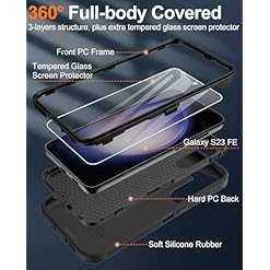 Compatible with Samsung Galaxy S23 FE: Exclusively designed for Samsung Galaxy S23 FE, this case offers a flawless fit; Come with 1pcs tempered glass screen protector, provide 360 degree full body protection; Wireless charging compatible
