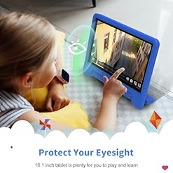 Rugged Kid-Resistant Case — The 10 inch kids tablet comes with a rugged child-resistant case and adjustable stand designed to protect against drops and bumps. The EVA case with a built-in kickstand can withstand all their adventures.