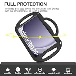 ❥【Durable & Kids Friendly Material】: New Samsung Tab A9+ 2023 kids case,which is entirely made of EVA foam rubber material,is friendly for even baby, durable in daily in use,and convenient to clean.
