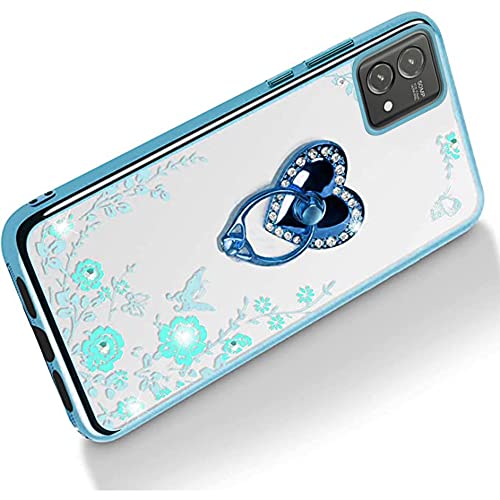 B-wishy for Moto G Stylus 5G 2023 Case for Women, Glitter Crystal Butterfly Heart Floral Slim TPU Luxury Bling Cute Protective Cover with Kickstand+Strap for Stylus 5G 2023