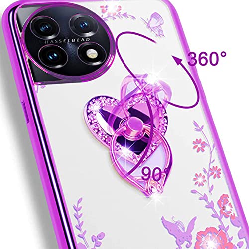 B-wishy for OnePlus 11 5G Phone Case Glitter Crystal Butterfly Heart Floral Slim TPU Luxury Bling Cute Protective Cover with Kickstand+Strap Case for OnePlus 11