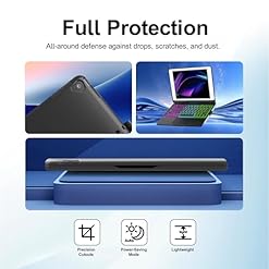 【Full Protection & Smart Power Saving】iPad 7th generation case with keyboard provides superior protection with premium hardshell design, ensuring all-around defense against drops, scratches, and dust. Precision cutouts provide full access to all ports. The lightweight design makes it portable. iPad 9th generation keyboard automatically enters power-saving mode when closed, extending standby time