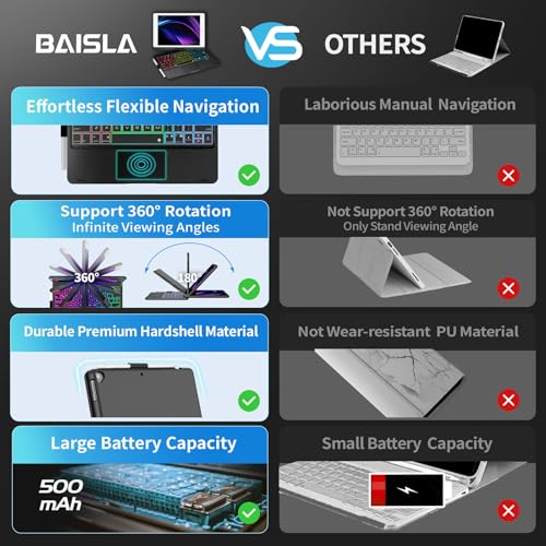 Baisla Keyboard Case for iPad 9th/8th/7th,Air 3,Pro 10.5,10th,11th,Air 11,Air 5/4/,Pro 11 4th/3rd/2nd/1st