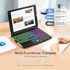 【Multi-Touch Trackpad】iPad 9th generation case with keyboard features a large multi-touch trackpad for convenient navigation and flexible gesture control. Enjoy browsing, designing, or drafting with unparalleled convenience. You don’t need to to manually swipe the iPad screen