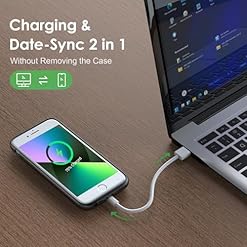【Advanced Sync-data Tech】①Amazing data& transmission sync-through technology that conveniently sync your iPhone to your Macbook,PC or laptop without taking the charging case off. ②You can simultaneously charge iPhone and battery charger case. ③Access to music or calling with Bluetooth headphone while charging your iPhone.