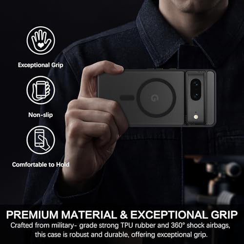 ♛【Compatible with MagSafe Accessories】 This Pixel 7 Case, with a built-in magnetic ring that aligns perfectly with MagSafe chargers and other Qi-certified chargers, offers a strong attach experience and faster wireless charging. This Google Pixel 7 Case can be firmly attached to all MagSafe accessories like MagSafe charger, wallet, battery pack, car mount. However, it can’t stick to metal surfaces like fridges, steel, etc.