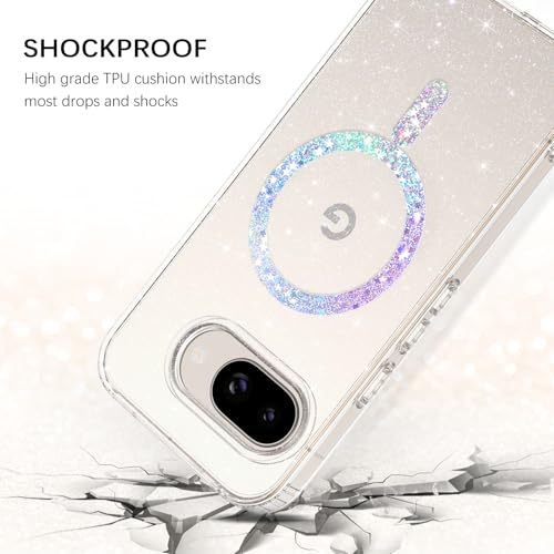 BENTOBEN for Google Pixel 9a Case Clear Glitter, [Compatible with MagSafe] Pixel 9A Magnetic Phone Case Transparent Crystal Shockproof Women Girl Protective Cover for 9a 6.3 inch Clear Glitter