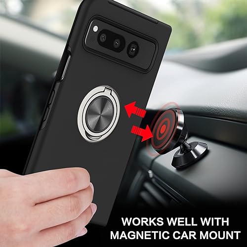 BENTOBEN for Google Pixel Fold Case(2023), [Full Hinge Protection] with 360° Ring Holder, Shockproof Slim Kickstand Magnetic Women Men Non-Slip Protective Phone Case for Pixel Fold 5G