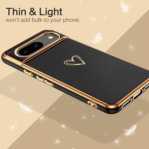BENTOBEN Compatible with Google Pixel 8 Case, Cute Heart Gold Plating Pixel 8 Phone Case, Slim Fit Flexible TPU Bumper Shockproof Protective Cover, Cell Phone Cases for Women Men Girls
