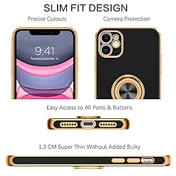 BENTOBEN for iPhone 11 Case with 360° Ring Holder, Shockproof Slim Kickstand Magnetic Support Car Mount Women Men Non-Slip Protective Phone Case for iPhone 11 6.1″, Black/Gold