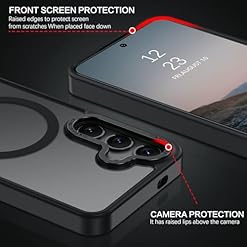 ♛【Compatible with MagSafe Accessories】 This Samsung Galaxy S24 Plus Phone Case, with a built-in magnetic ring that aligns perfectly with MagSafe chargers and other Qi-certified chargers, offers a strong attach experience and faster wireless charging. This Samsung Galaxy S24 Plus Case can be firmly attached to all MagSafe accessories like MagSafe charger, wallet, battery pack, car mount. However, it can’t stick to metal surfaces like fridges, steel, etc.