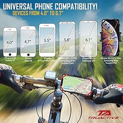 TruActive Premium Bike Phone Mount Holder | Universal Cell Phone Mount for 4″-7″ Phones | Includes 6 Reusable Color Bands | Tool Free Handlebar Mount for Bicycle, Motorcycle, Electric Scooter, ATV