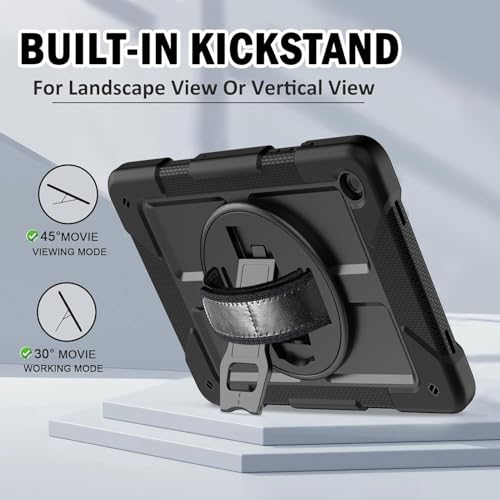 ➤【360 Rotating Hand Strap & Stand】With adjustable swivel hand strap and stand, you can hold the galaxy tab a9 plus case 11’’ by one hand and find the most comfortable viewing angle you need. The built-in stand provides a stable supports, with viewing/drawing/typing angles you need, and it can be folded up when not in use