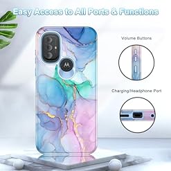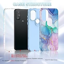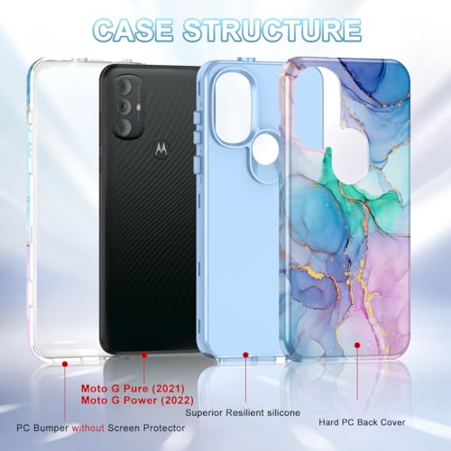 Btscase for Motorola Moto G Pure 2021 Case/Moto G Power 2022 Case, Marble Pattern 3 in 1 Heavy Duty Shockproof Full Body Hard PC+Soft Silicone Drop Protective Women Girls Phone Case
