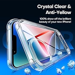 👑【Anti-Yellowing & Perfectly Clear】This case is made of Hard PC Back and high-quality TPU imported from Germany, 10X anti-yellowing materials provide long-lasting clarity to show the original beauty of your iPhone.