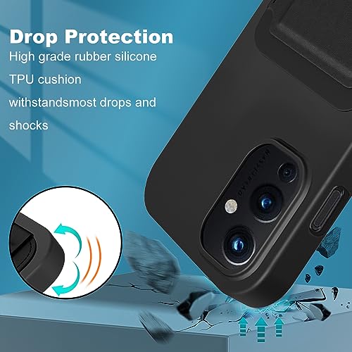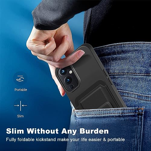 Case for OnePlus 9 5G Phone Case with Tempered Glass Screen Protector, Folding Kickstand/Stand Wallet Case Card Holder/ Slots Silicone TPU Shockproof Protective Case for Oneplus 9/1+ 9 2021 – Black