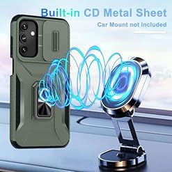 Compatible Model: With slide camera cover protective phone case, only for Samsung Galaxy A15 5G,Not applicable to other models. Notice: Due to the metal ring on the back,the case will NOT work with wireless Charging function.