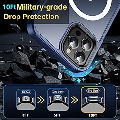 【10FT Military Grade Drop Protection】This black magsafe case for iphone 12 Pro Max has passed the military grade drop test. Featured 4 corners with a built-in 360° airbag to absorb and disperse 99.99% of the shock of falling. Ensure your phone safety after five thousand times from a height of 10FT to a hard ground.The design of the 1.3mm bezel over the screen and the 3.1mm lips over the camera provide additional and comprehensive protection for your phone.