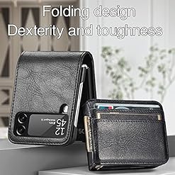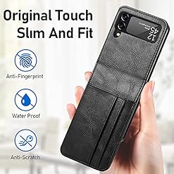 [Premium Leather & Slim Design]: Made of high-quality PU leather, this Z Flip4 case with card holder is lightweight, anti-scratch, waterproof, and anti-fingerprint, ensuring durability while maintaining a sleek look