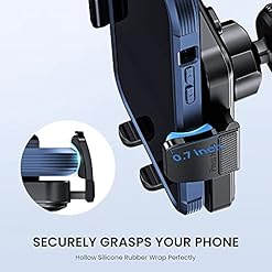 Upgraded Metal Hook: Car phone holder mount features an upgraded metal hook with a thick plastic layer wrapped around outside which firmly locking the vent blades without scratches. The iPhone car mount is compatible with both horizontal and vertical vents, ensures stable even on sharp turns or bumpy roads.