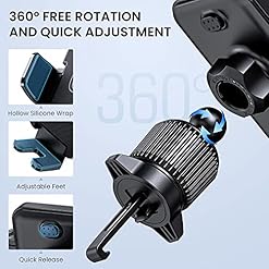 Upgraded Metal Hook: Car phone holder mount features an upgraded metal hook with a thick plastic layer wrapped around outdoor which firmly locking the vent blades without scratches. The iPhone car mount is compatible with both horizontal and vertical vents, ensures stable even on sharp turns or bumpy roads.